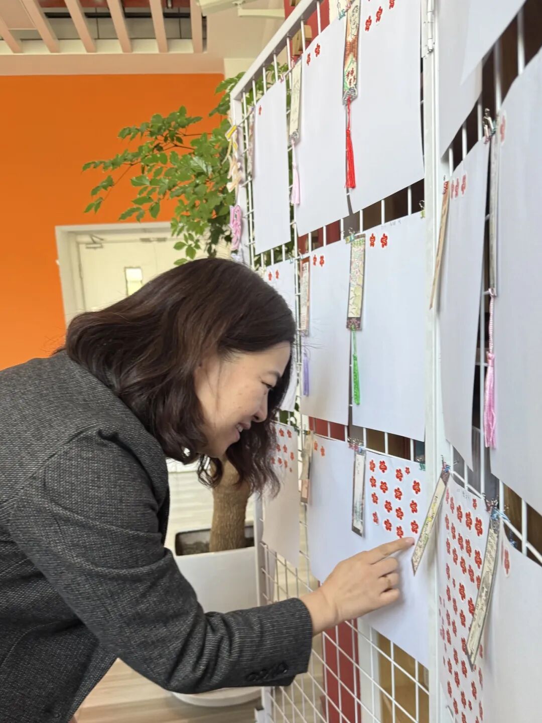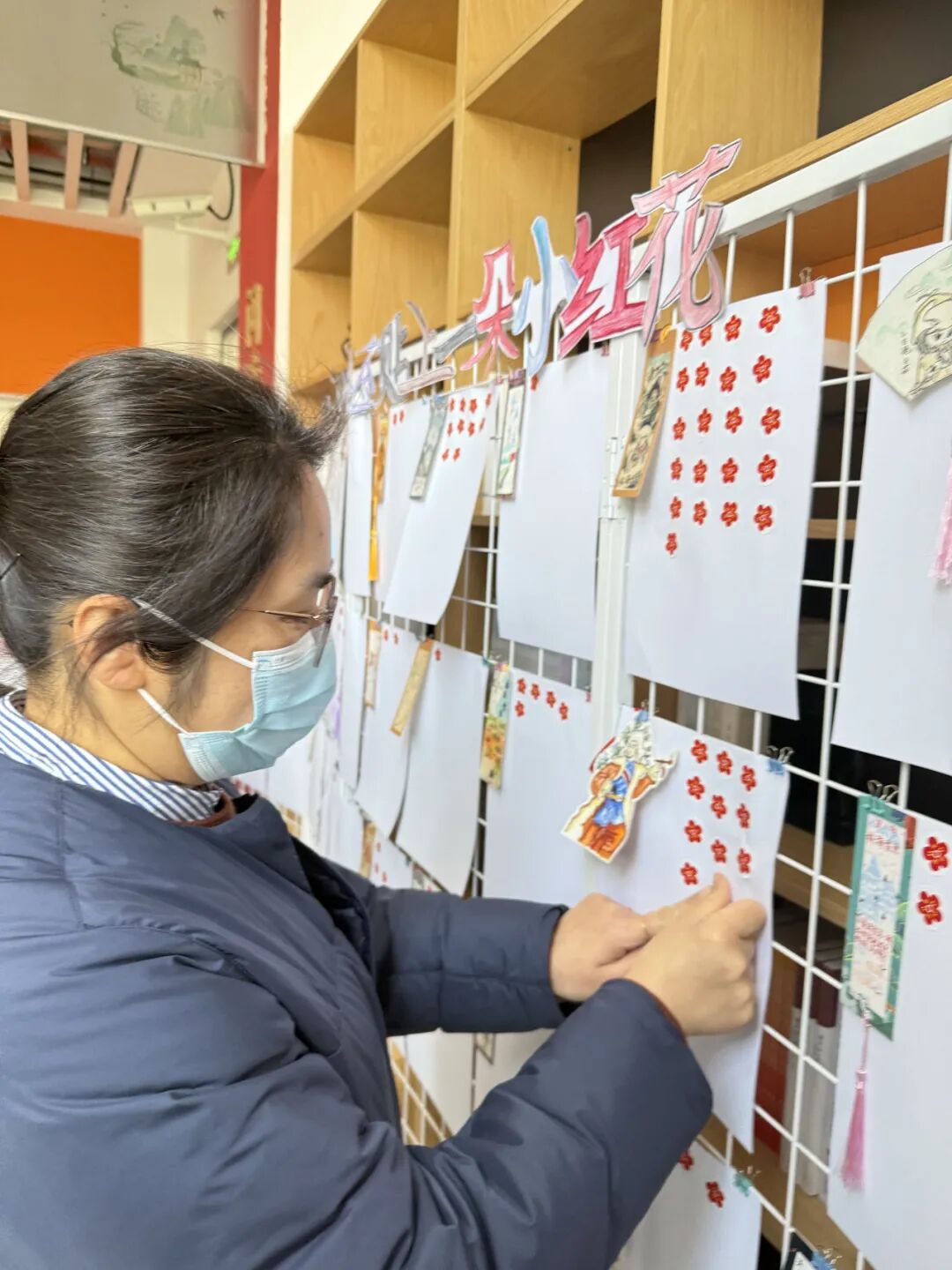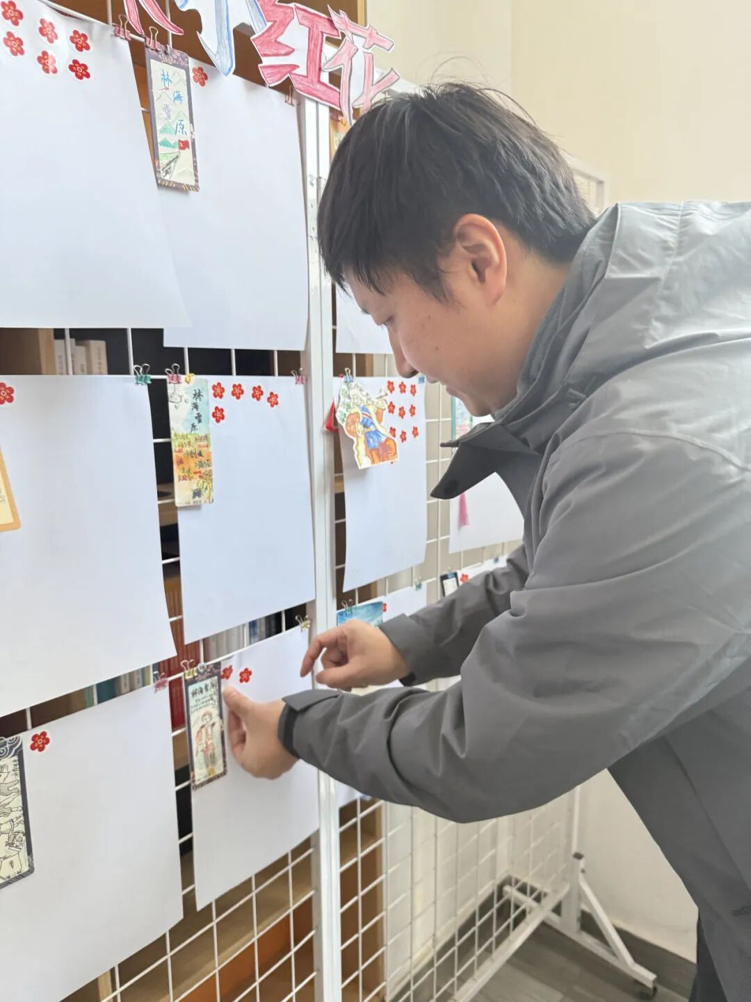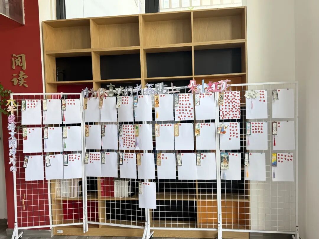 经过班级内的激烈角逐,每班推选 5 张优秀书签进入最终的现场投票环节。在投票现场,学生们认真选择,为自己心仪的书签贴上小红花。现场气氛热烈非凡,学生们积极参与,老师们也热情高涨。