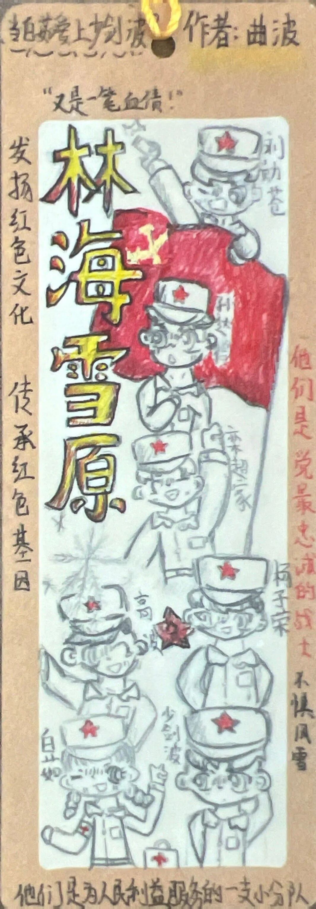年级学生在阅读《林海雪原》的过程中加深了对革命先辈精神的理解,也在书签设计的过程中锻炼了创新表达能力,让红色精神在校园中熠熠生辉,激励学生们在新时代不断奋进前行。