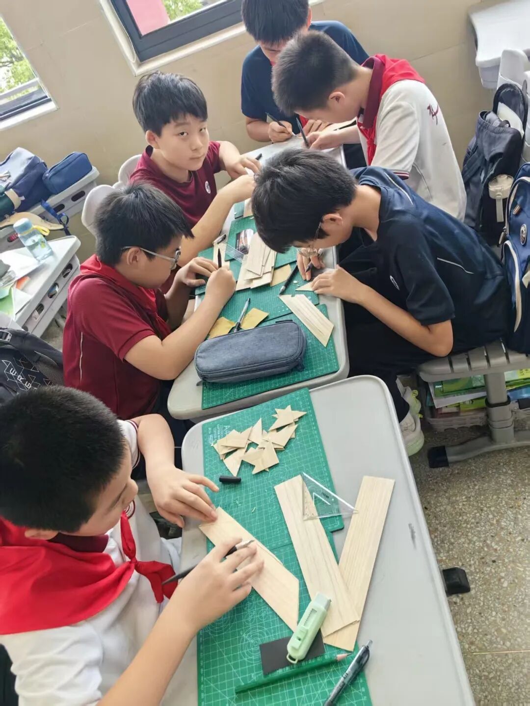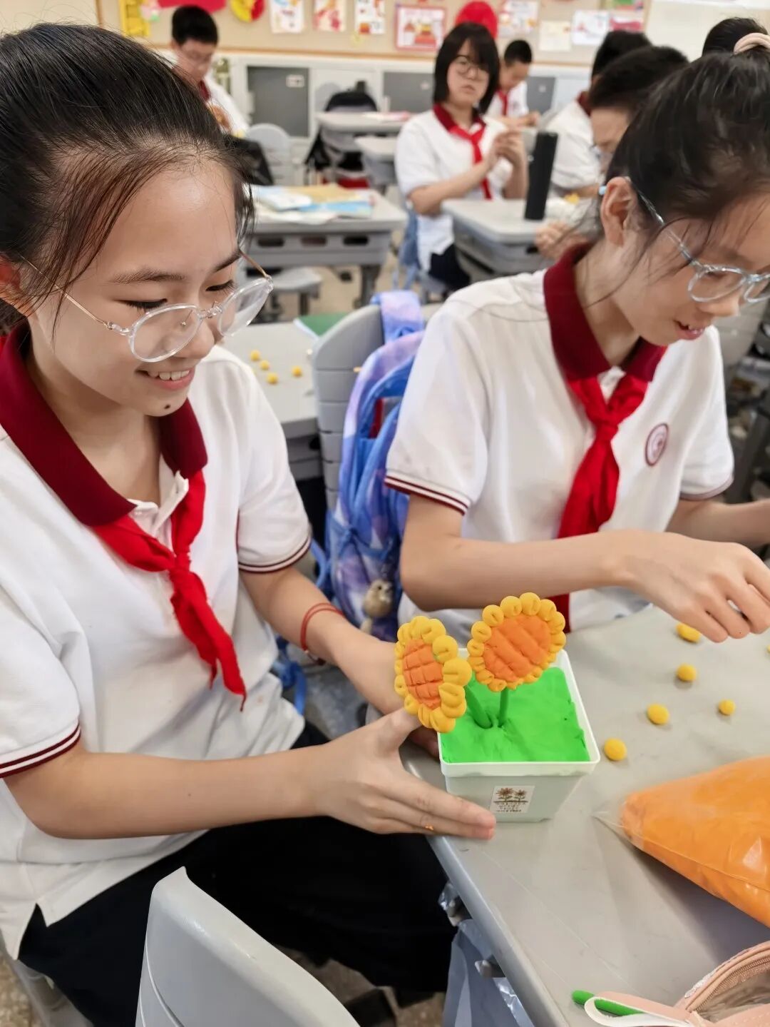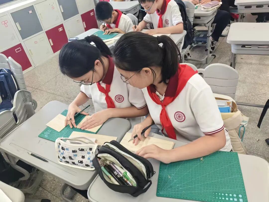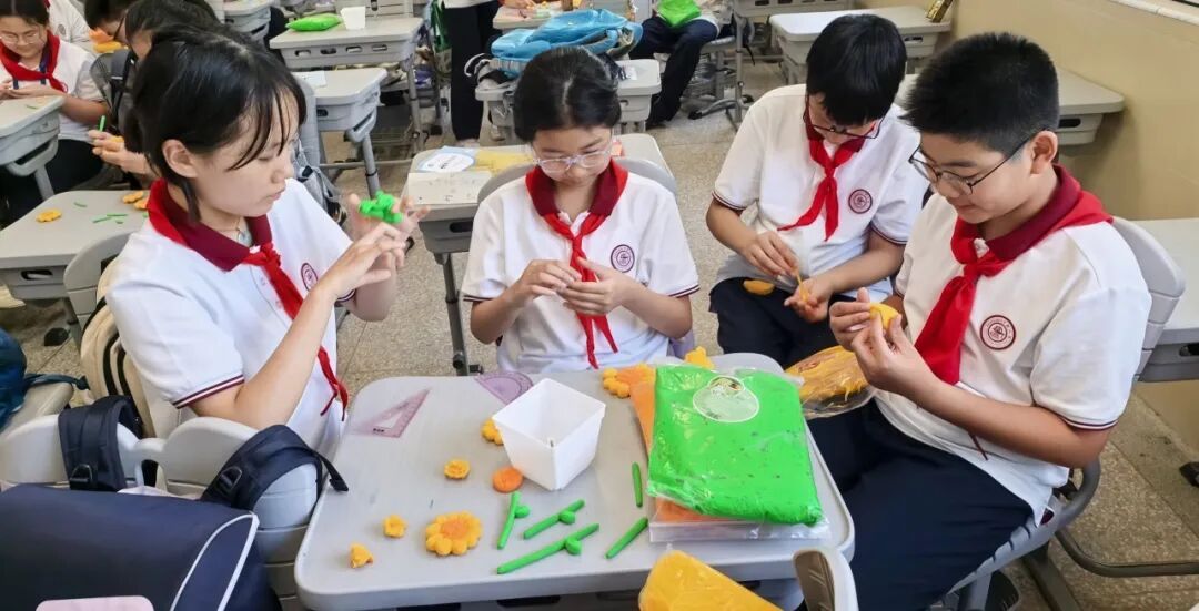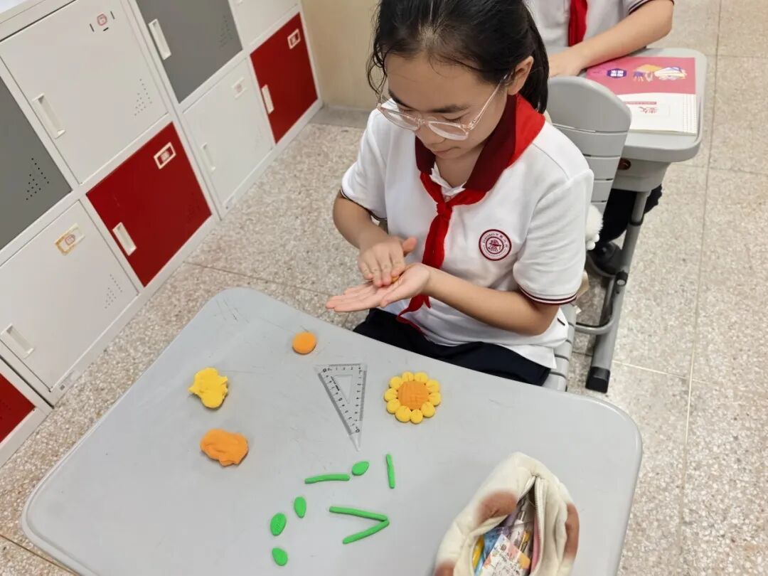 “洪德艺匠”劳动科技教育课程 整理书包:秩序之中,见微知著 从分类整理到每日清点,同学们在整理书包的过程中,不仅掌握了系统化管理学习物品的方法,更锤炼了严谨细致的生活习惯,于潜移默化中塑造着对自我负责的担当意识。当凌乱归于齐整,当秩序成为本能,责任融入日常,拉链开合间显露的不仅是整齐码放的课本,更是劳动所赋予的切实成就感与内在掌控力。这一切,都将化为他们走向更广阔人生舞台的坚实基石。 水饺制作:手作温暖,情系传统 作为承载千年温情的美食象征,水饺将团圆的祈愿与祝福的密语,巧妙地包藏于月牙般的形态之中。同学们亲手和面、擀皮、包馅,在劳动实践中掌握生活技能,更在协作中感受到民族文化的深厚底蕴与家庭的温馨氛围。这一项目不仅是一场味觉的盛宴,更是情感与文化的传承之旅,让学生深刻体会到劳动是连接过去与未来的桥梁。 布艺挂件:指尖生花,缀美生活 以“变废为宝”为初心,同学们在方寸布帛间重拾传统缝纫的温度。从穿针引线的生涩到锁扣装饰的娴熟,一针一线皆修行,零布碎料在他们的指尖悄然绽放为玲珑可爱的草莓挂饰。这不仅是技艺的习得,更是对耐心与美感的深度淬炼。当针线在指间轻盈起舞,同学们不仅领悟了物尽其用的古老智慧,更见证了平凡在匠心点化下绽放的不凡光华。 布艺小包袋:方寸之间,织就匠心 从一幅素朴的平面布料,到一枚立体的实用包袋,同学们在绘制、裁剪与缝制的创造之旅中,实现了从二维到三维的空间思维跃迁。针起针落间,是缜密心思的绵延;线短线长处,是细致匠心的沉淀。这小小的布艺包袋,不仅是掌中方物,更是劳动品质的凝华——它无声地诉说着:真正的匠心,正是在这方寸经纬中织就,在细微针脚里长存。 匠心相框:以木为媒,传薪致远 同学们以我国杰出工匠与科学家为精神灯塔,在团队协作中开启了一段木艺修行。从草图勾勒时的凝神沉思,到木料切割时的精准果决,再到打磨组装时的细腻专注——每一次雕琢都是与先贤的对话,每一道纹理都镌刻着精神的传承。木屑纷飞,同学们感悟坚持真谛与协作共鸣。 这些承载故事的相框,不仅是生活点缀,更是当代青春向永恒匠心的敬礼。 石膏板雕:以刀为笔,镌刻心声 在盈尺见方的石膏板上,同学们以刀代笔,以板为画布。锋刃游走之间,碎屑飘落之处,主题鲜明,线条流畅。经过反复打磨与适度敷彩,每一方石膏板都化身为独一无二的艺术语言。这方寸之间的雕刻,不仅是技艺的锤炼,更是劳动与美育的完美融合。 向阳始-黏土向日葵 捏塑阳光,心向美好 作为“朵朵葵花向阳开”课程的开篇,六年级同学们以双手捏塑阳光,用巧思播种希望。在揉、捏、拼、接之间,一朵朵向日葵悄然绽放,焕发着蓬勃的生命力。 同学们不仅掌握了黏土造型的基本技法,更在指尖流转中,体会到向日葵所承载的向阳而生、坚韧乐观的精神品质。课程还注重引导学生树立物尽其用的意识——合理规划用料、自觉践行垃圾分类,让美的创造与环保理念相映成趣,让艺术创作与可持续发展同频共振。 向阳追-向日葵光照编程实验 科技赋能,探索自然 在编程与植物生长的交汇处,同学们用代码书写阳光与生命的对话。通过编写光照控制程序、调试智能系统,他们探索着光如何塑造向日葵的生长轨迹。科技与自然在此交融,劳动与创新并肩前行。这一项目不仅锻炼了学生的逻辑思维与动手能力,更让他们亲身体验到科技如何为传统种植注入全新活力。
