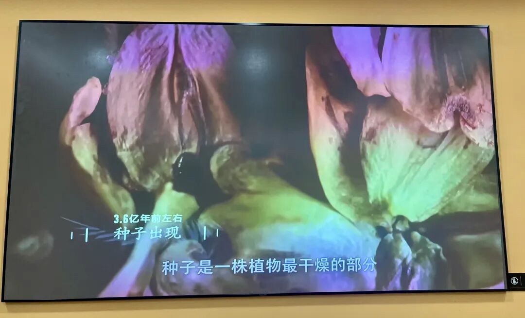 经由视听 使生态之美直抵人心 图书馆小剧场的 “自然视听课堂” 同样座无虚席。《地球脉动》《我们的星球》《影响世界的中国植物》等纪录片循环播放:《地球脉动》中极地冰川的壮阔、热带雨林的生机,让学生足不出校便领略地球的多样地貌;《我们的星球》通过对比生态变迁,引导学生思考人类与自然的共生关系;《影响世界的中国植物》则讲述本土植物的生长故事,激发学生对身边自然的珍视。 光影交错之际,同学们时而对自然奇观发出惊叹,时而对生态现状陷入沉思,这场视听盛宴,成功地将遥远的生态故事,化为每个人心中真切的共鸣,成为传递环保理念的生动媒介。