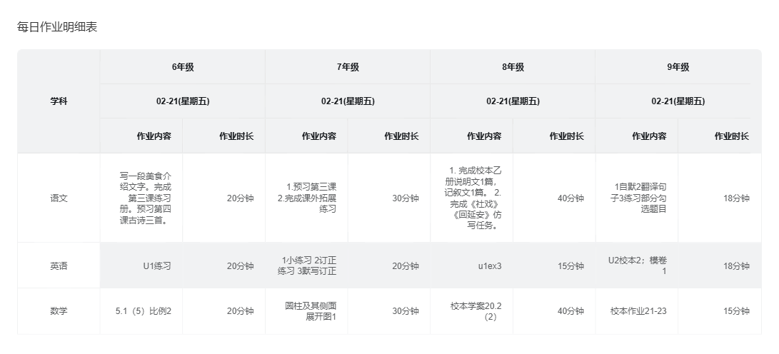 交大附中附属嘉定洪德中学作业公示02.21